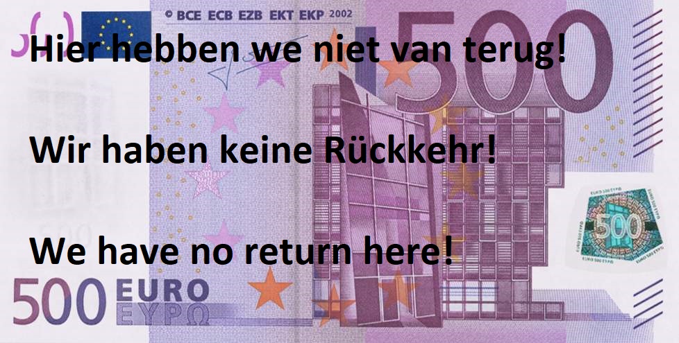 Wij moet voor elk bankbiljet 200 en 500 euro wat wij bij de bank deponeren € 5,- betalen.