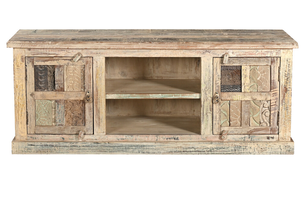 2 deuren, een schap TV kast in sloophout, vintage, in goede staa. Te koop in Brocante meubels, brocante vintage India meubelen | Teak Paleis
