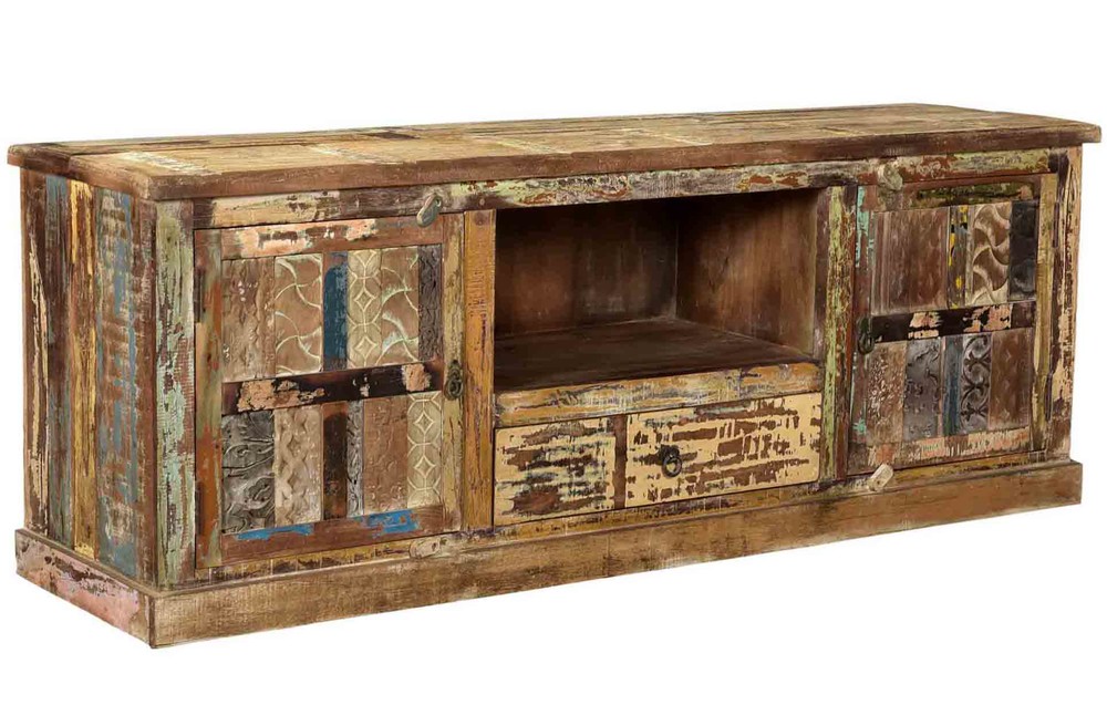 Houtsnijwerk tv meubel in gerecycled hout, India, in perfecte staat, te koop in Brocante meubels, brocante vintage India meubelen | Teak Paleis