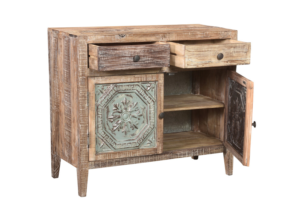 industrieel commode 2 deuren 2 laden oude metalen panelen in metaal en hout, industrie vintage, in zo goed als nieuw goed staat, te koop in industriële meubels | Teak Paleis