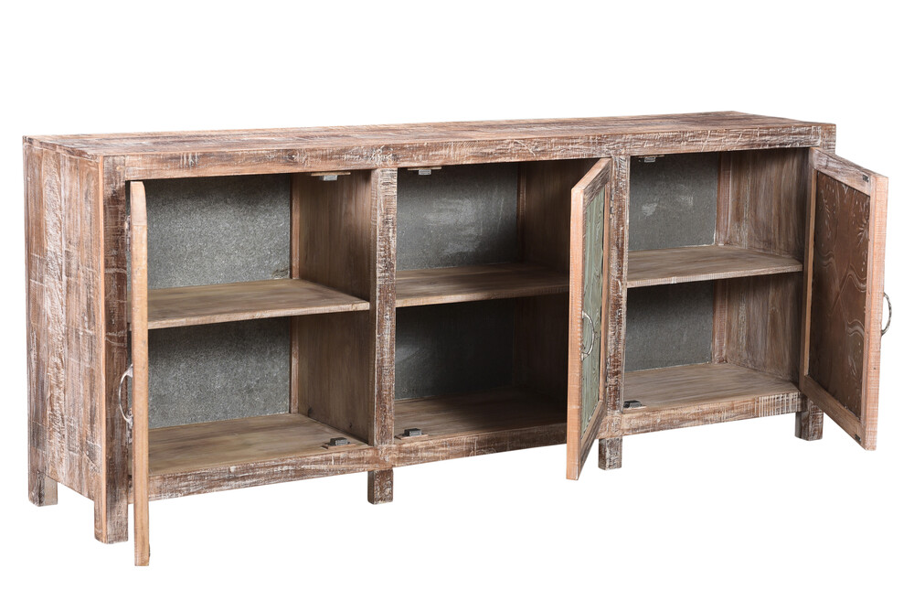Industrieel dressoir 3 deuren oude metalen panelen in metaal en hout, industrie vintage, in zo goed als nieuw goed staat, te koop in industriële meubels | Teak Paleis