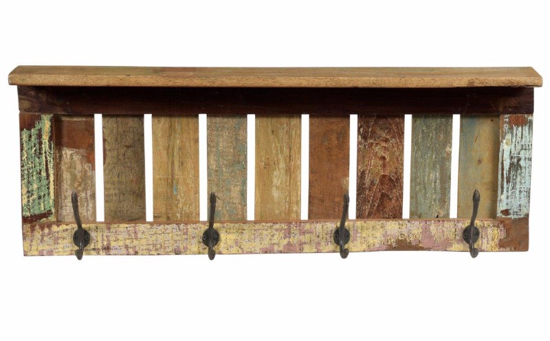 Ruwe Kapstok met veel verschillende kleuren. Het heeft vier haken en een vintage uitstraling.