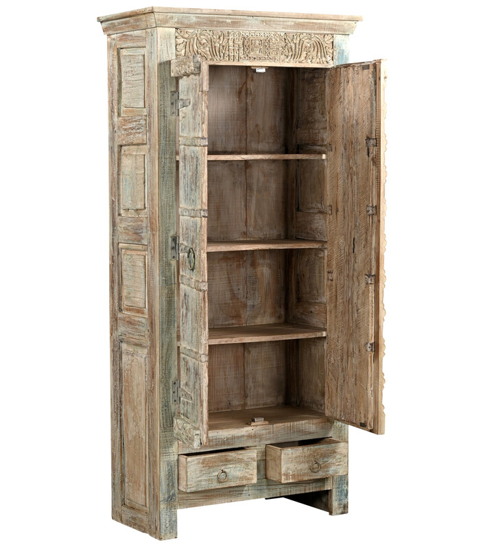 Vintage 2 deuren met panelen kast in sloophout, brocante, in prima staat, te koop in Indiase meubelen | Teak Paleis