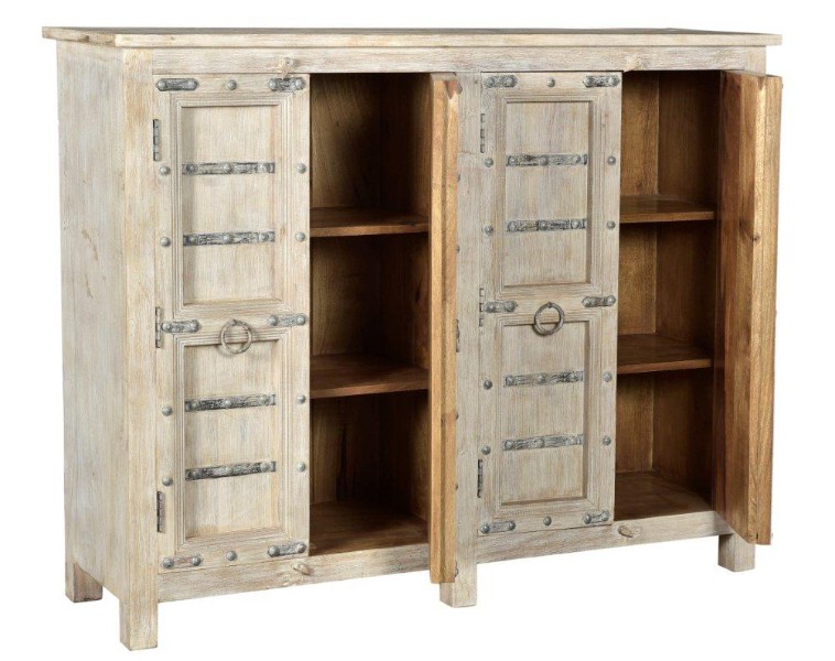 Vintage hoge 4 deuren dressoir in sloophout, brocante, in prima staat, te koop in Indiase meubelen | Teak Paleis