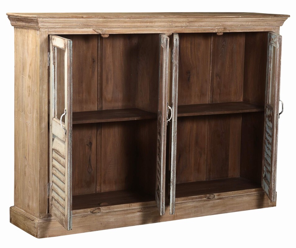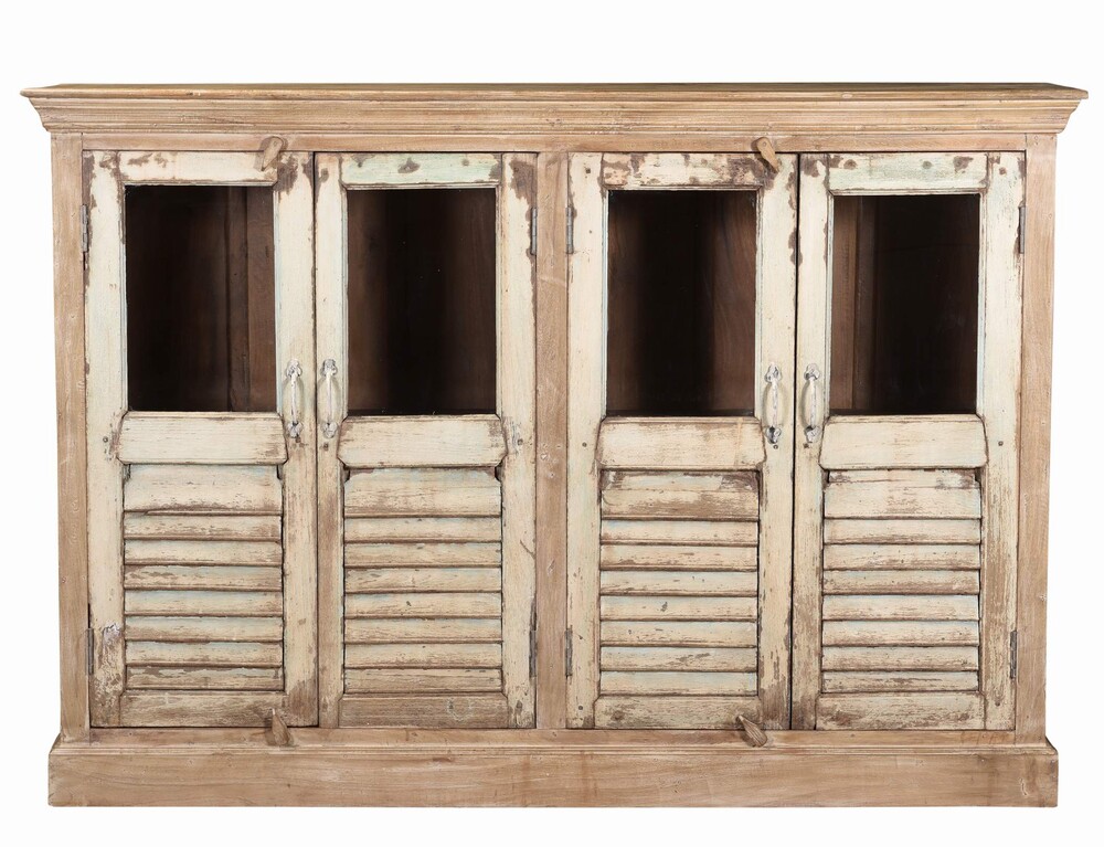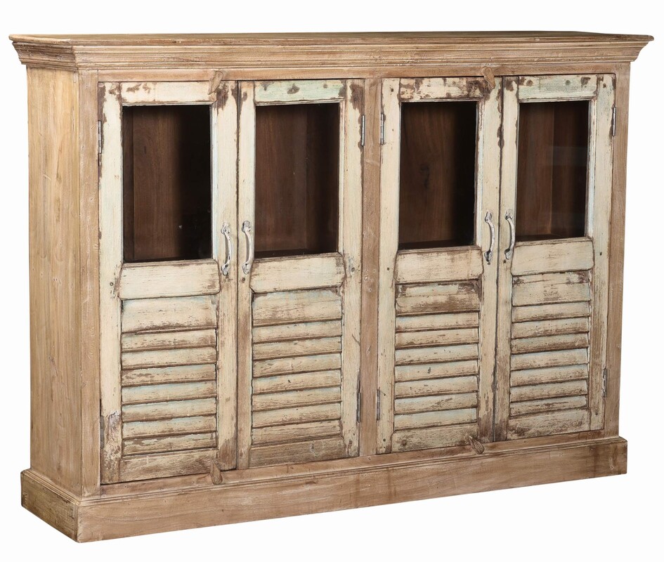 4 deuren glaskast in gerecycled hout, brocante, in goed staat, te koop in Brocante meubels, glaskasten en buffetkasten | Teak Paleis