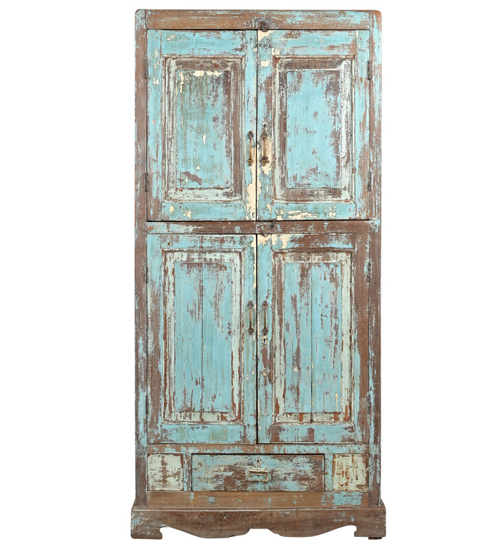 Brocante kast die gemaakt is van gerecycled teakhout. De teak kast heeft een mooie blauwe kleur. Daardoor heeft de kast een brocante uitstraling.