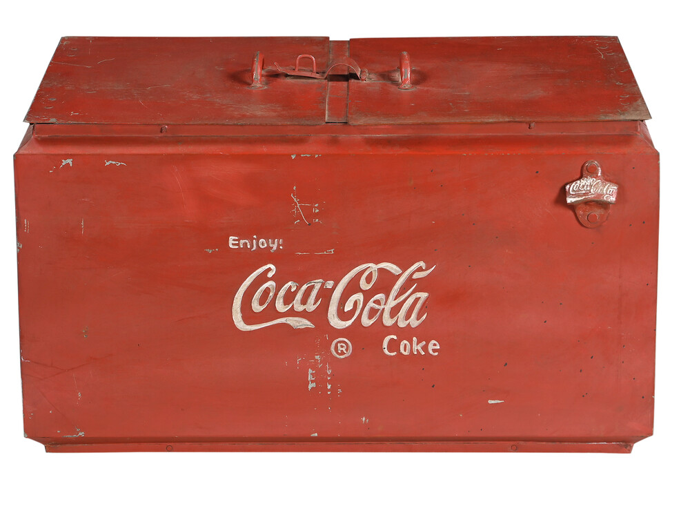 Brocante koelbox van ijzer die een rode coca cola look heeft. Ook heeft deze koelbox een vintage uitstraling. Overigens is deze box leuk te gebruiken als decoratie.