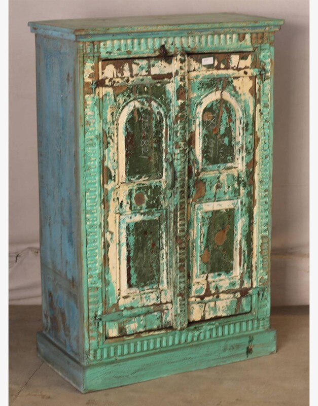 Gekleurde meidenkast in gerecycled hout, shabby-chic, in perfecte staat, te koop in brocante meubels, meidenkasten | Teak Paleis