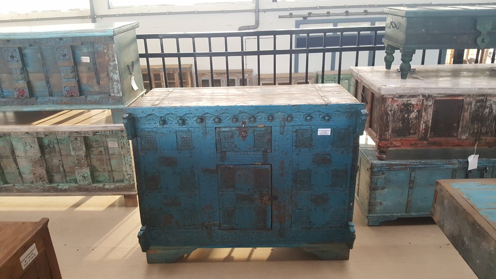 Blauwe Dressoir in gerecycled hout, Nederland shabby-chic