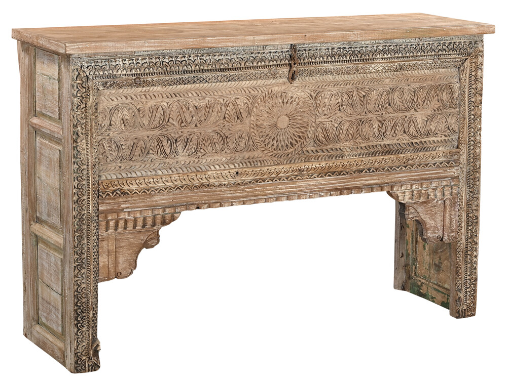 Houtgesneden kist in sloophout, vintage, in fijne staat, te koop in brocante meubels, salontafels en kisten | Teak Paleis