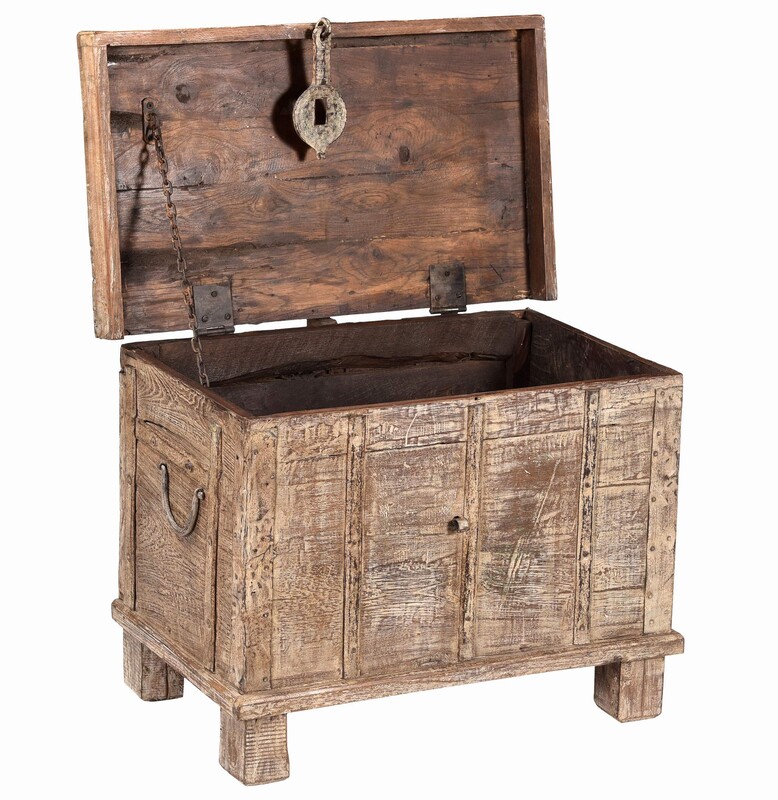 Houtgesneden kist in sloophout, vintage, in fijne staat, te koop in brocante meubels, salontafels en kisten | Teak Paleis