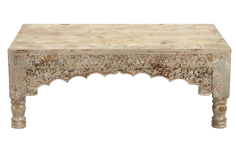 Houtsnijwerk salontafel in sloophout, shabby chic, in perfecte staat, te koop in brocante meubels, salontafels en kisten | Teak Paleis