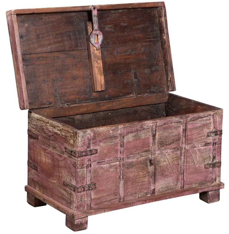 Brocante kist die een unieke uitstraling heeft. Dat komt door de gebruikte kleuren en het houtsnijwerk dat in het kastje is verwerkt. Ook is dit meubel te gebruiken als nachtkastje.