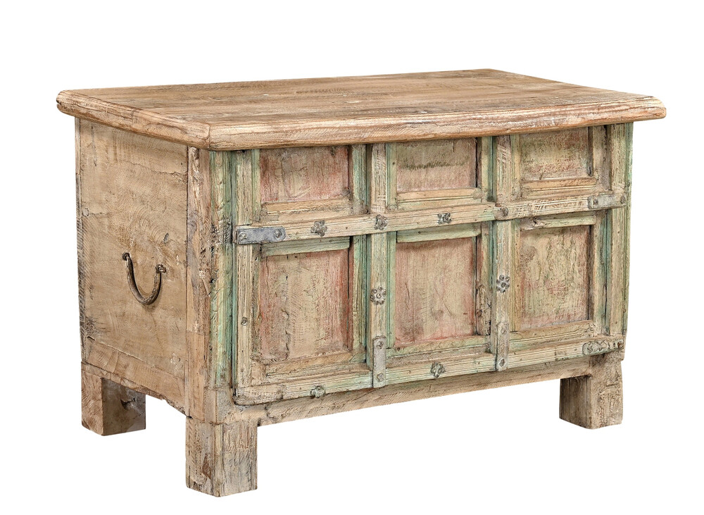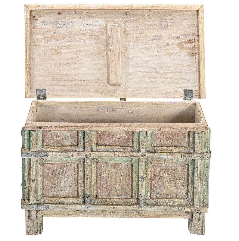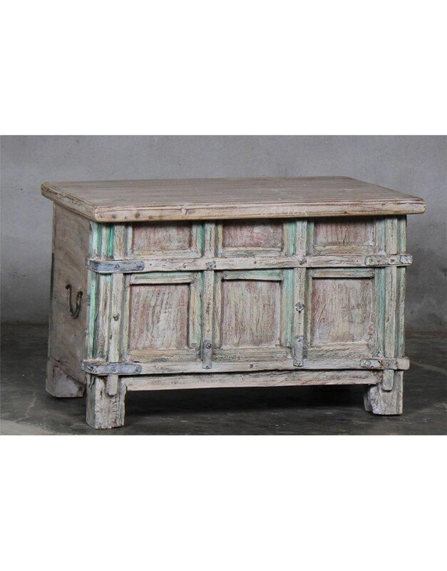 Deze brocante gekleurde kist biedt erg veel opbergruimte. Deze kist is een goede aanvulling op uw brocante interieur, leuk te combineren met brocante dressoirs.