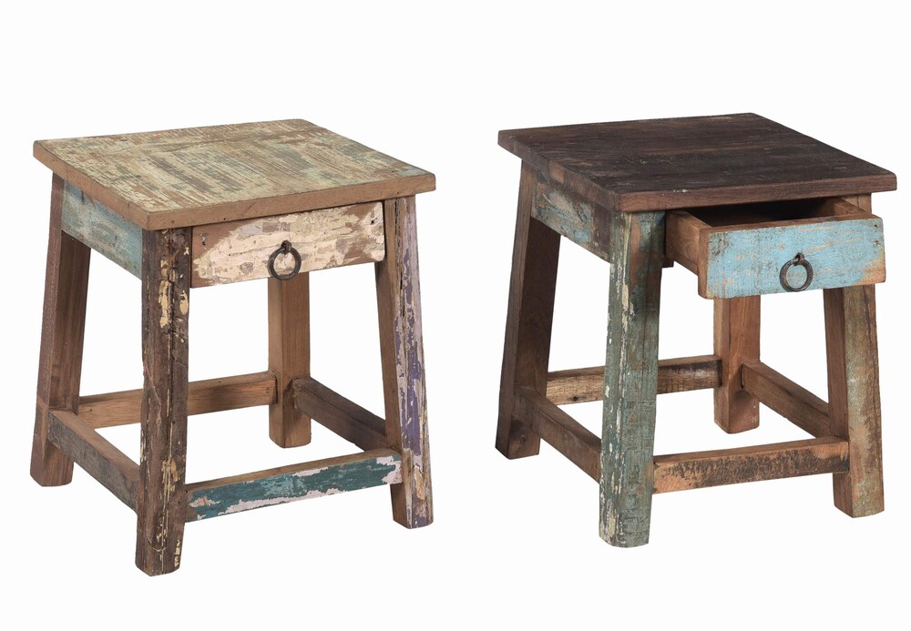 Ronde kruk in gerecycled hout, vintage, in goede staat, te koop in brocante meubels, kleinemeubelen | Teak Paleis
