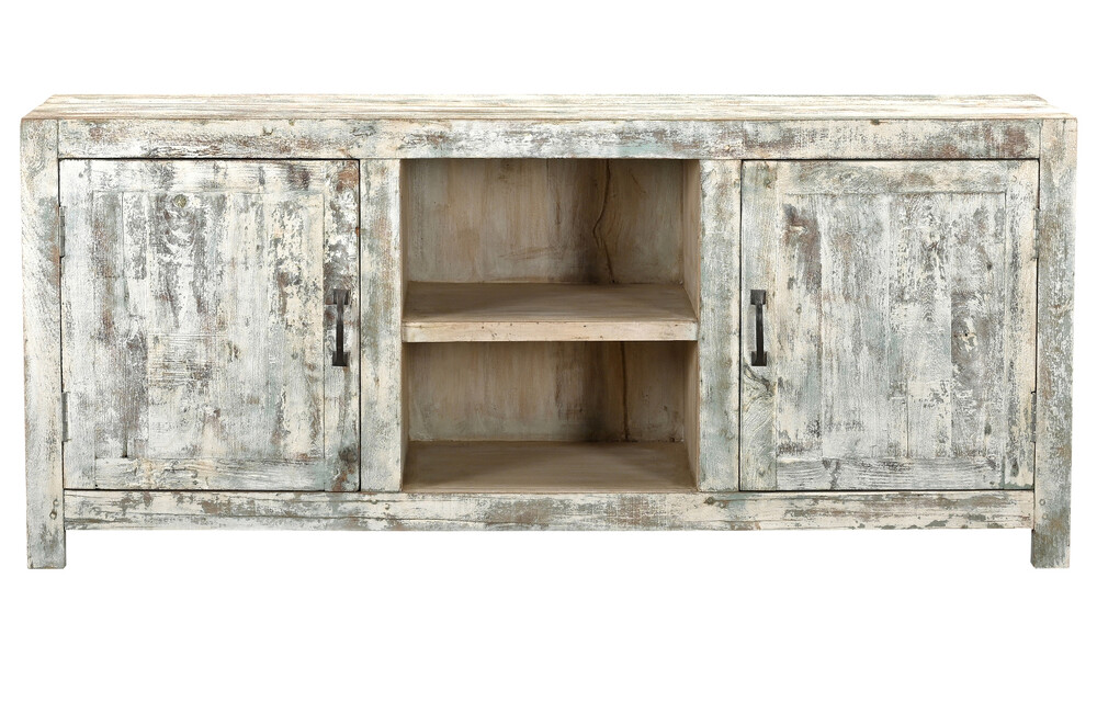 2 deuren, 1 schap TV meubel in sloophout, Holland shabby-chic