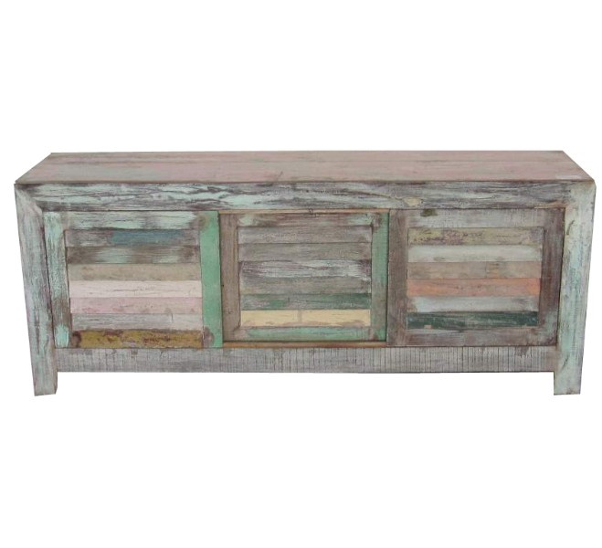 Schuifdeuren Tv meubel in sloophout, brocant, in prima staat, te koop in teak meubelen België, brocante meubels | Teak Paleis