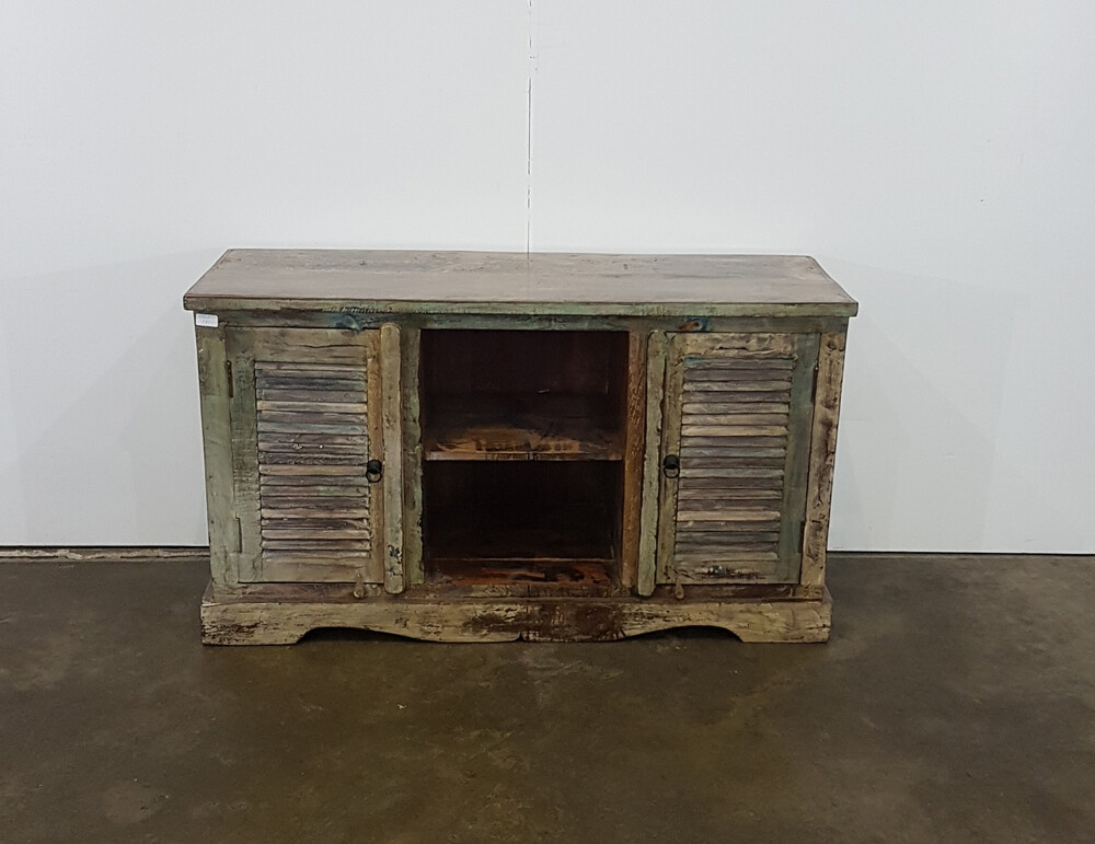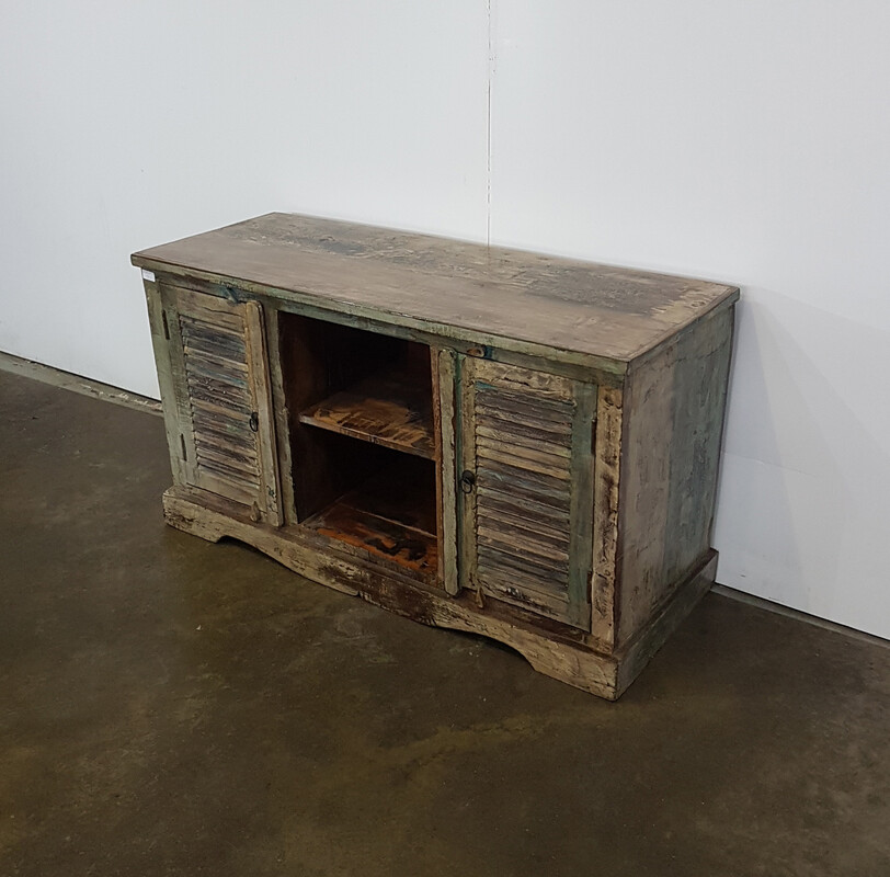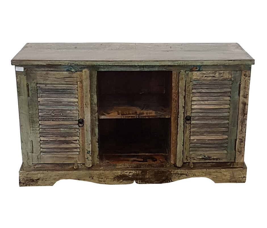 Twee lamellendeuren tv kast in gerecycled hout, vintage, in fijne staat, te koop in brocante meubels, tv meubelen | Teak Paleis